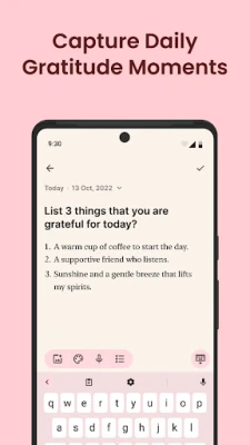 幸福に満ちた人生を送るために、心の健康と自己肯定感は不可欠です。日々の忙しさの中で、感謝の気持ちや自分への労りを忘れがちではありませんか?「Gratitude」は、感謝日記、アファメーション、ビジョンボード、そしてインスピレーションに満ちたコンテンツを通じて、あなたが自己愛を育み、前向きなモチベーションを見出すための強力なパートナーとなります。あなたの貴重な内省が誰にも覗かれることなく、完全にプライベートな空間で守られていることをお約束します。