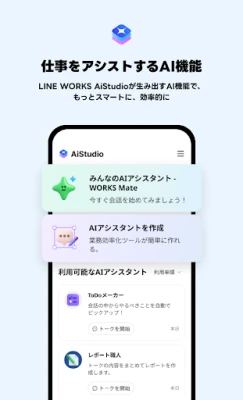 LINE WORKS は、企業の規模、業種、職種を問わず、世代やIT経験の異なるあらゆる従業員の円滑な意思疎通を支援します。チームの連携を強化し、情報共有と業務効率の向上を促進するビジネスコミュニケーションツールです。