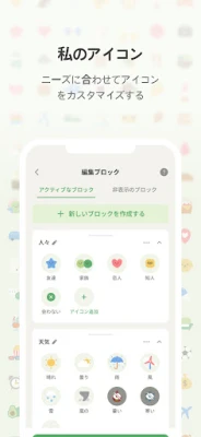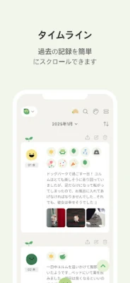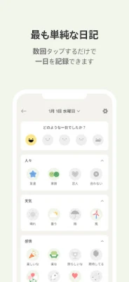 日々の記録は、驚くほど簡単かつ創造的です。その日の気分を象徴する気分まめを選んだら、多彩な活動アイコンで一日を彩り豊かに表現しましょう。さらに、心に残る一枚の写真と、簡潔な一行メモを添えることで、より深みのある記録が完成します。また、あなたのライフスタイルに合わせて記録したい要素を選べる「記録ブロック」機能も充実。カテゴリーは随時更新され、いつでも自由にブロックを追加・削除できるため、常に最適な形で自分自身を記録し続けられます。