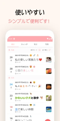 日々のささやかな瞬間から大切な思い出まで、自分だけの一日を丁寧に記録できるアプリ。未来の自分へ、感動や発見を鮮やかに残しましょう。