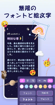 日記は、あなたの感情、思考、大切な思い出を記録するための無料オンライン日記アプリです。写真や絵文字、気分など、豊富な機能で日々の出来事を表現し、人生の瞬間を詳細に記録。あなただけの素晴らしい物語を紡ぎます。