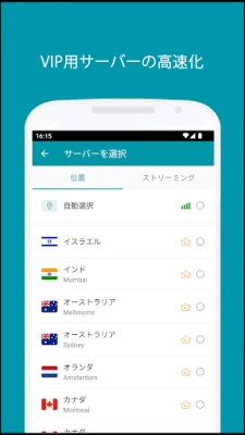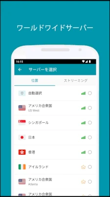世界中に広がるThunder VPNの高速VPNネットワークは、アメリカ、ヨーロッパ、アジアを含む幅広い地域をカバーし、さらなる拡大を続けています。多数のサーバーから、最適な接続先をスマートに選択でき、高速かつ安定したインターネット体験を保証します。煩わしい登録や複雑な設定は一切不要。ワンタップでセキュアな接続が確立し、すぐに利用を開始できます。さらに、Android 5.0以降のデバイスでは、特定のアプリのみでVPNの使用を細かく制御する高度な機能も利用可能です。